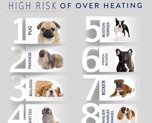 Com o aproximar do Verão, e com estes dias quentes, há necessidade de ter um cuidado redobrado com os nossos animais. Nesta altura, devido às temperaturas elevadas, existe uma grande probabilidade de golpe de calor. Embora todos os animais estejam em risco, existem raças com maior predisposição, como as referidas na imagem abaixo.